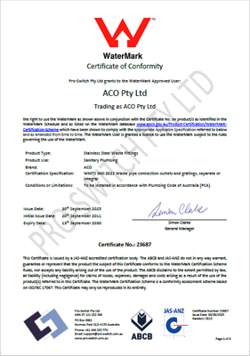 WaterMark Level 2 Certificate of Conformity